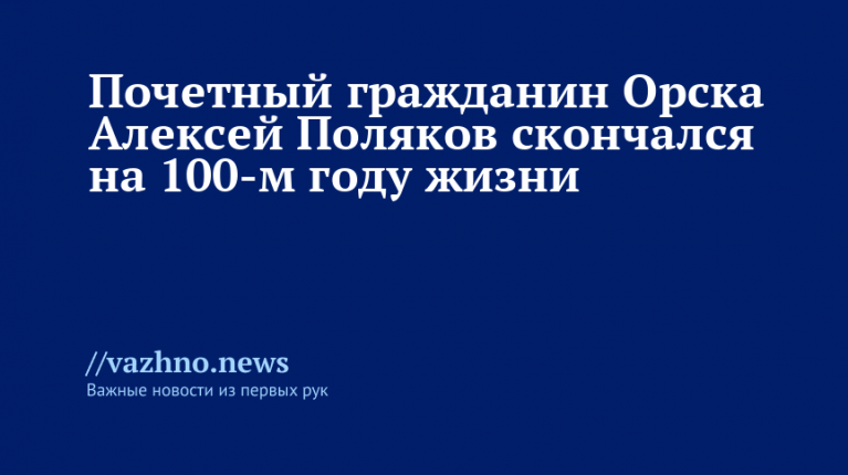 «С глубокой скорбью сообщаю вам, что на 100-м году жизни скончался Почетный гражданин города Орска, ветеран Великой Отечественной войны и труда Алексей Петрович Поляков», — написал он в своем Telegram-канале.