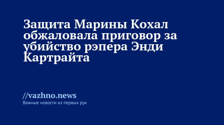 Защита Марины Кохал обжаловала приговор, по которому ей назначено 12,5 года лишения свободы за убийство супруга, рэпера Энди Картрайта (Александра Юшко). Об этом сообщается 7 декабря.