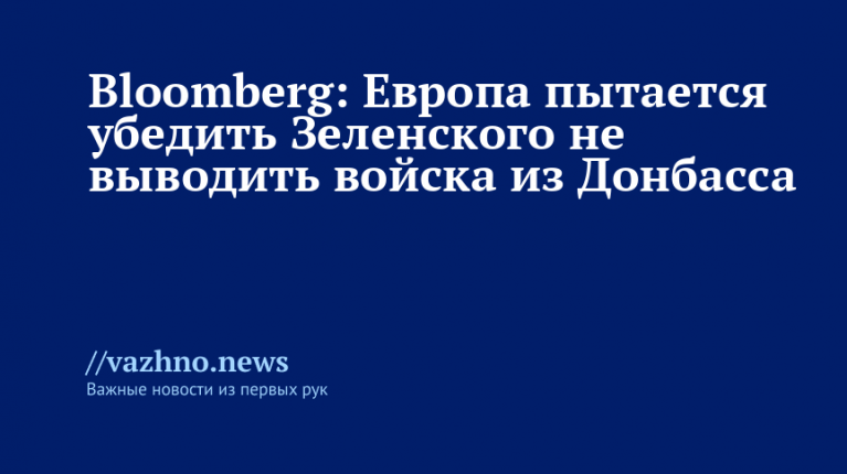 Европейские страны стараются склонить президента Украины Владимира Зеленского не отводить войска с территории Донбасса, как этого добивается Россия в рамках возможного соглашения о прекращении огня. Об этом 7 декабря сообщило агентство Bloomberg.
