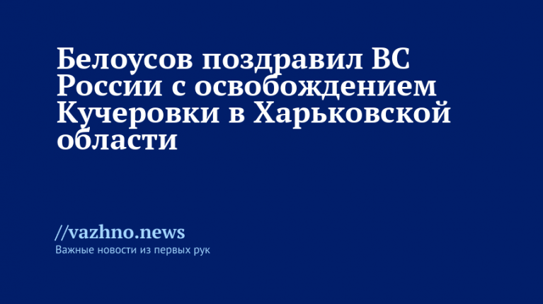 Министр обороны России Андрей Белоусов направил поздравления военнослужащим 1486 гвардейского мотострелкового полка и 121 мотострелкового полка в связи с освобождением Кучеровки в Харьковской области. Об этом 7 декабря сообщила пресс-служба ведомства.