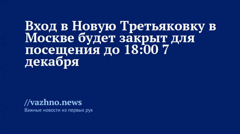 Во второе здание Третьяковской галереи — «Новая Третьяковка» на Крымском валу — вход закрыт для посетителей в воскресенье, 7 декабря, до 18:00 мск. Об этом 7 декабря сообщила пресс-служба музея.