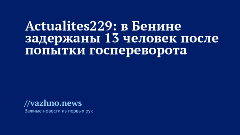В Бенине задержаны 13 человек, причастных к попытке государственного переворота. Среди арестованных — 12 военнослужащих, которые участвовали в захвате национального телевидения, а также один бывший военный, ранее исключенный из рядов армии. Об этом 7 декабря на странице в социальной сети X (бывш. Twitter) сообщило издание Actualites229.