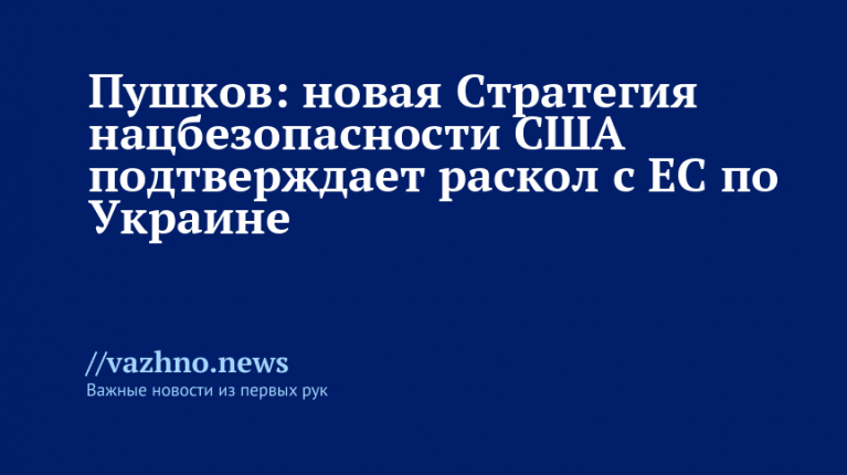 7 декабря сенатор Алексей Пушков заявил, что новая Стратегия национальной безопасности США зафиксировала существование разногласий между администрацией президента Дональда Трампа и Европейским союзом (ЕС) по украинскому конфликту.