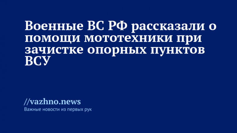 ВС РФ рассказали о роли мототехники в зачистке опорных пунктов ВСУ