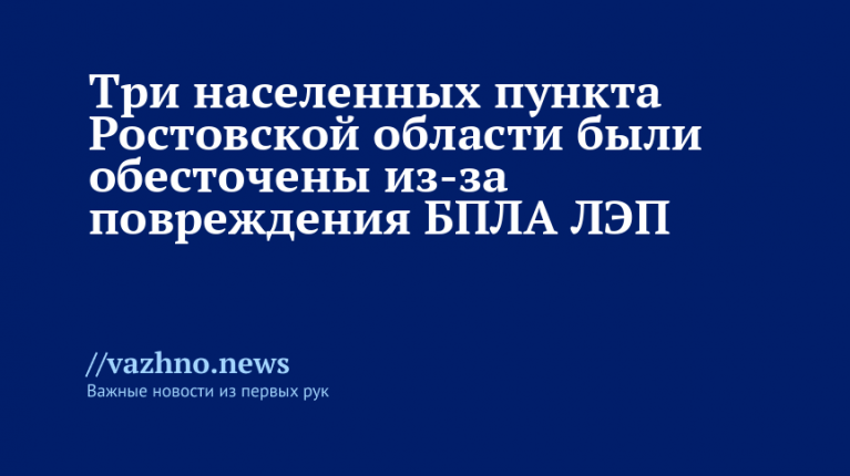 Три населённых пункта Ростовской области остались без света из‑за БПЛА
