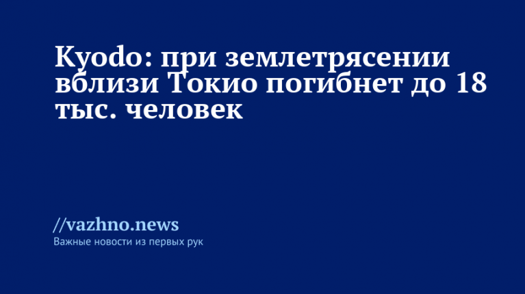 Агентство Kyodo, ссылаясь на оценку правительства, сообщает, что при сильном землетрясении магнитудой 7 в районе Токио число погибших может достигнуть 18 тыс. человек.