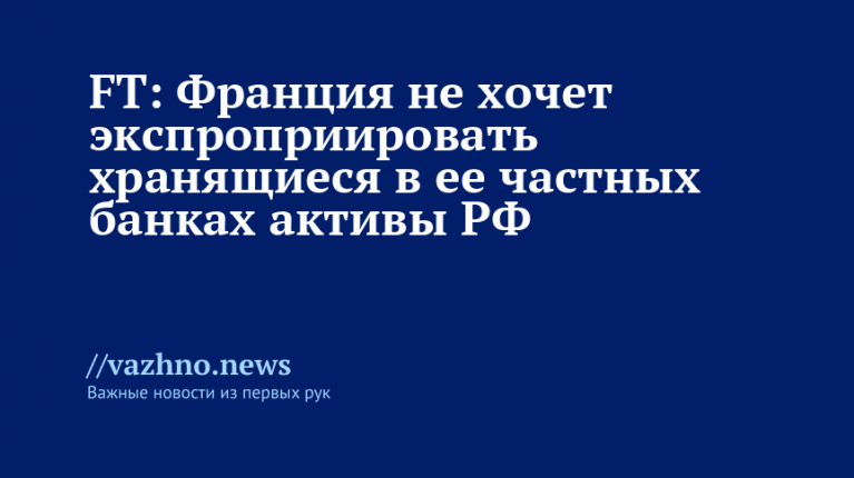 FT: Франция отказывается экспроприировать активы РФ в частных банках