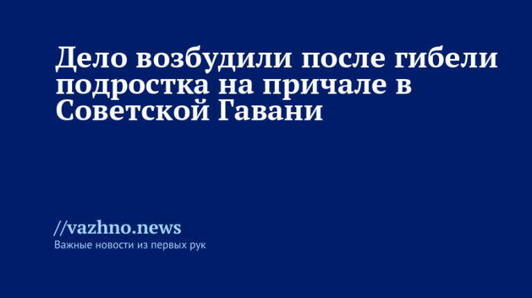 Возле причала в городе Советская Гавань Хабаровского края обнаружено тело несовершеннолетнего. Мальчик погиб в результате утопления. По факту инцидента возбуждено уголовное дело по статье «Причинение смерти по неосторожности двум лицам».