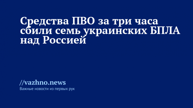 За три часа ПВО сбили семь украинских дронов над Россией