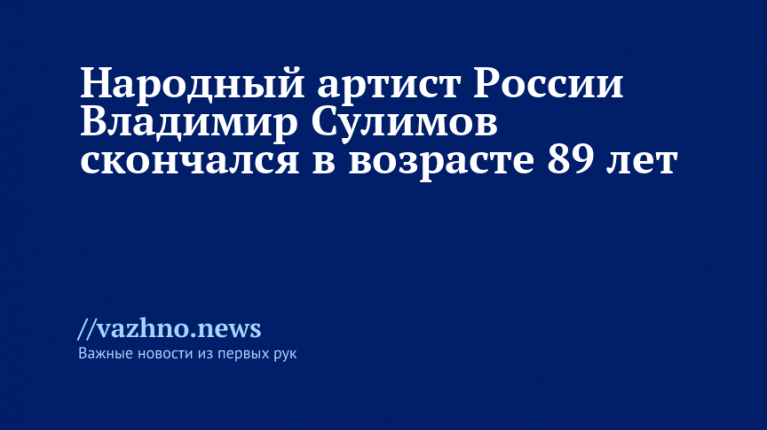 «Театр Моссовета постигла горькая утрата. Не стало народного артиста России, профессора Владимира Сергеевича Сулимова», — говорится в сообщении Telegram-канале театра.