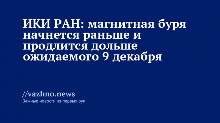 ИКИ РАН: магнитная буря начнётся раньше и продлится дольше 9 декабря