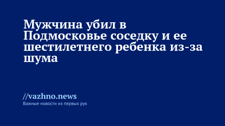 В Котельниках Московской области мужчина убил соседку и ее шестилетнего сына из-за шума, следует из сообщения, поступившего в понедельник, 8 декабря, в «Известия».