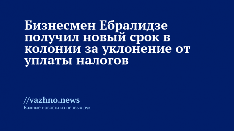 8 декабря объединенная пресс-служба судов Санкт-Петербурга сообщила, что Ленинский суд города вынес приговор предпринимателю Александру Ебралидзе — ему назначено девять месяцев лишения свободы по делу об уклонении от уплаты налогов на сумму свыше 180 млн рублей.