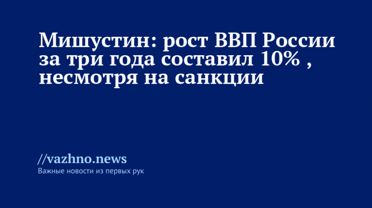 Председатель правительства РФ Михаил Мишустин на заседании Совета по стратегическому развитию и национальным проектам 8 декабря сообщил, что за последние три года ВВП России вырос почти на 10% несмотря на санкционное давление. Такое заявление он сделал в ходе встречи, подчёркивая динамику экономических показателей.