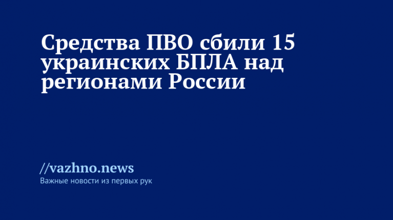 ПВО сбило 15 украинских беспилотников над регионами РФ