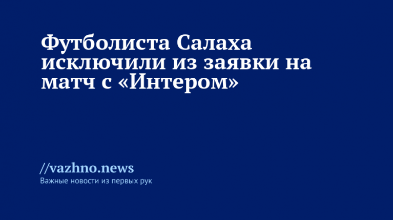Мохамед Салах, нападающий английского футбольного клуба «Ливерпуль», не включен в состав команды на ближайшую встречу Лиги чемпионов против «Интера». Об этом сообщается в перечне игроков, опубликованном 8 декабря на сайте клуба.