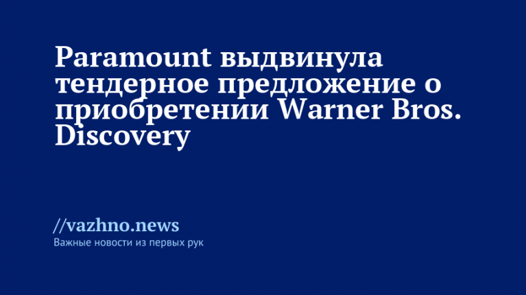 «Компания Paramount, подразделение Skydance Corporation , сегодня объявила о тендерном предложении о приобретении всех находящихся в обращении акций Warner Bros. Discovery за наличные по цене $30 за акцию. Предлагаемая сделка охватывает весь WBD, включая сегмент Global Networks», — говорится в пресс-релизе.