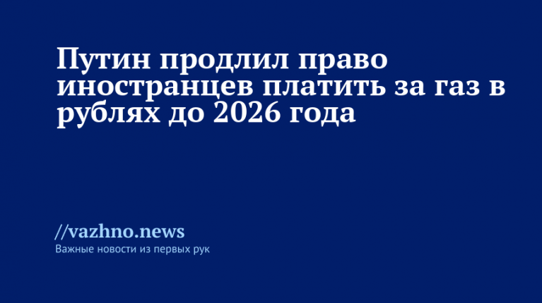 Президент России Владимир Путин продлил действие распоряжения, которое дает иностранным покупателям право оплачивать российский газ в рублях не лишь через Газпромбанк, но и через иные российские кредитные организации, — сроком до 1 апреля 2026 года. Соответствующий указ появился 8 декабря на интернет-портале правовой информации.