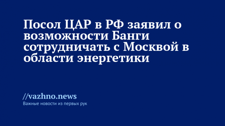 Посол Центральноафриканской Республики в РФ Леон Додону-Пунагаза в интервью «Известиям» заявил, что между Россией и ЦАР возможно сотрудничество в энергетическом направлении. Представитель республики в России подчеркнул необходимость взаимодействия именно в этой сфере и отметил значимость такой кооперации для страны.
