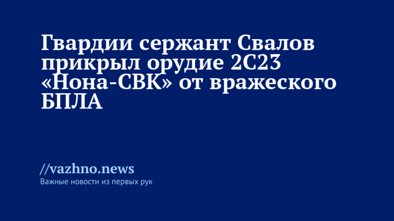 Гвардии сержант Василий Свалов, исполняя обязанности старшего наводчика артиллерийской батареи, обеспечил прикрытие самоходного орудия 2С23 «Нона-СВК» от удара вражеского беспилотника. О подвигах военнослужащих Вооруженных сил (ВС) РФ в зоне проведения специальной военной операции (СВО) во вторник, 9 декабря, сообщили в пресс-службе Минобороны России.