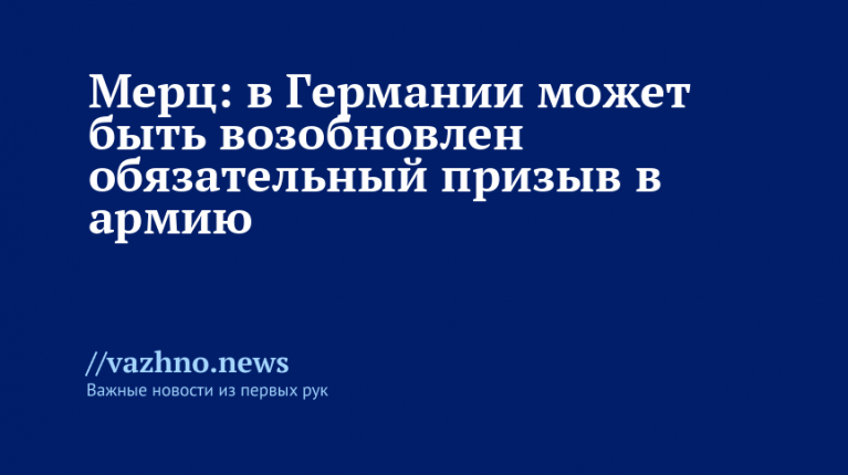 Канцлер ФРГ Фридрих Мерц в эфире телеканала ARD 8 декабря заявил, что при нехватке новобранцев в бундесвере в Германии может вернуться обсуждение введения обязательной военной службы.