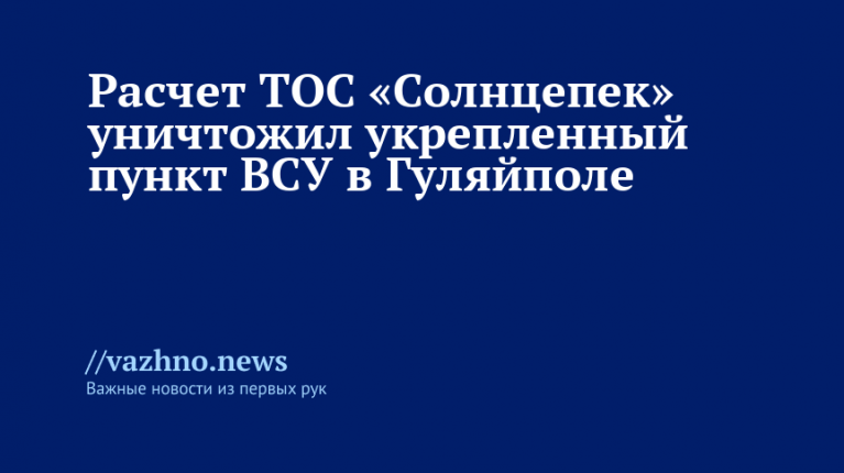 9 декабря пресс-служба Минобороны России сообщила, что расчет тяжелой огнеметной системы (ТОС) «Солнцепек» группировки войск «Восток» уничтожил укрепленный пункт размещения Вооруженных сил Украины (ВСУ) в городе Гуляйполе Запорожской области. Таким образом названы кто, что и где произошло.