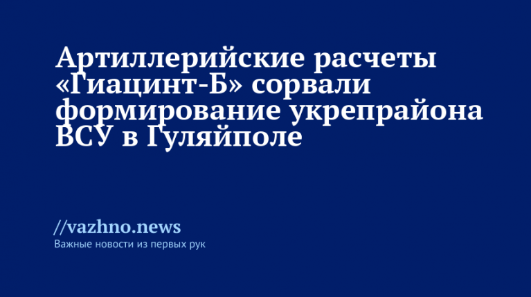 9 декабря в пресс-службе Минобороны России сообщили, что артиллерийские расчеты «Гиацинт-Б» группировки войск «Восток» нанесли удар по опорным пунктам Вооруженных сил Украины (ВСУ) в городе Гуляйполе Запорожской области и уничтожили их, в результате чего сорвалось формирование укрепрайона в населенном пункте.