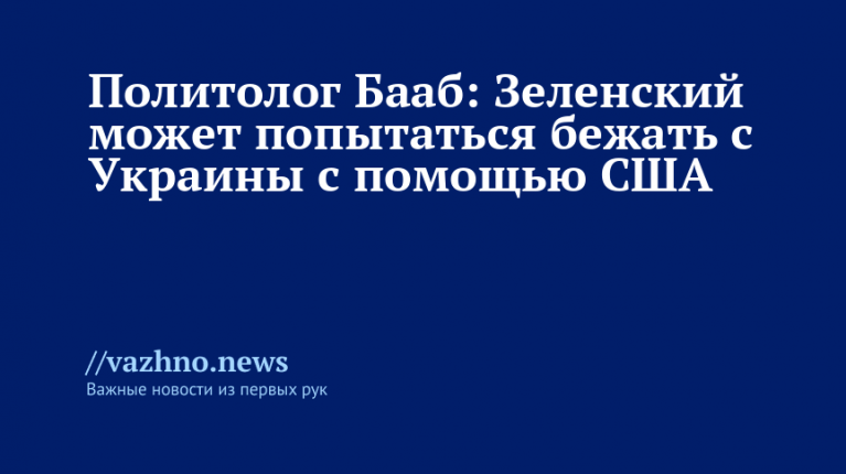 Президент Украины Владимир Зеленский оказался в безвыходном положении, и, по мнению немецкого политолога Патрика Бааба, его единственной опорой может стать уход из страны с возможной поддержкой американских спецподразделений. Такую оценку он высказал 8 ноября в эфире видеохостинга YouTube.
