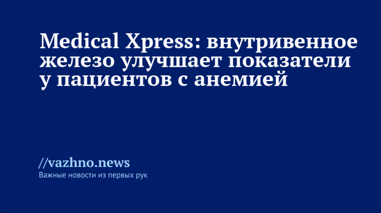 «Наши данные показывают, что внутривенное введение препаратов железа безопасно пациентам с железодефицитной анемией и острой бактериальной инфекцией и что у пациентов, получавших внутривенное введение препаратов железа, наблюдается более высокий уровень гемоглобина», — отметил ведущий автор работы, доктор Харис Сохайл.