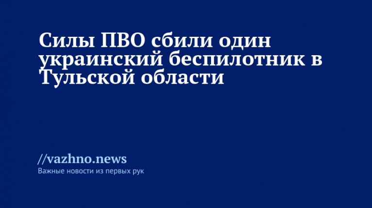 Один беспилотный летательный аппарат (БПЛА) был уничтожен силами противовоздушной обороны над территорией Тульской области. Об этом 9 ноября в Telegram-канале сообщил глава региона Дмитрий Миляев.