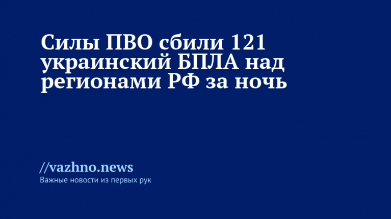 «В течение прошедшей ночи в период с 23:00 мск 8 декабря до 07:00 9 декабря дежурными средствами ПВО перехвачен и уничтожен 121 украинский БПЛА самолетного типа», — сообщили в ведомстве.