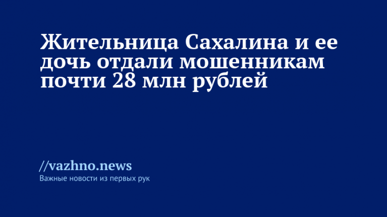 В Сахалинской области злоумышленники обманули 51-летнюю женщину и ее 19-летнюю дочь, применив схему с «заменой ключей». В результате общие потери пострадавших составили примерно 28 млн рублей.
