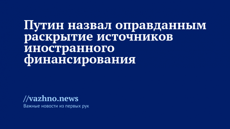 Президент России Владимир Путин 9 декабря заявил, что раскрытие источников иностранного финансирования является оправданным.