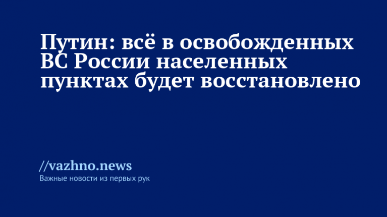 Президент России Владимир Путин 9 декабря на заседании Совета по развитию гражданского общества и правам человека заявил, что все населенные пункты, разрушенные в ходе боевых действий на территориях, освобожденных российскими войсками, будут восстановлены.