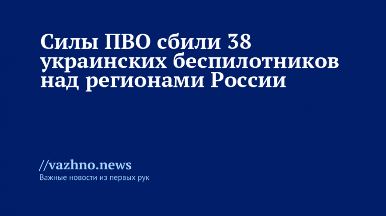 «В период с 14:00 мск до 20:00 мск дежурными средствами ПВО перехвачены и уничтожены 38 украинских беспилотных летательных аппаратов самолетного типа», — указано в Telegram-канале ведомства.