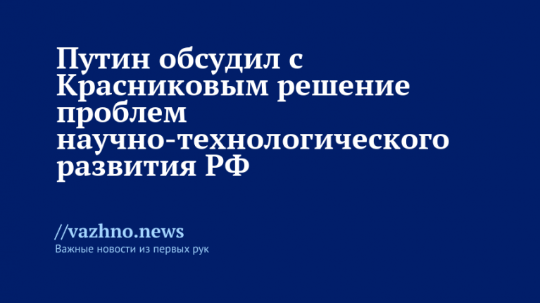 В Кремле прошла встреча, посвященная роли РАН в выполнении поручений главы государства по усилению технологического лидерства России. Красников представил доклад, в котором главным были вопросы, связанные с научно-технологическим развитием.