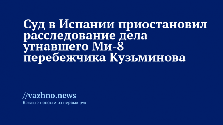 Суд в Испании приостановил расследование смерти летчика Максима Кузьминова, угнавшего в 2023 году вертолет Ми-8 и перебежавшего на Украину, из-за отсутствия подозреваемых. Об этом 9 декабря сообщили судебные власти Испании.