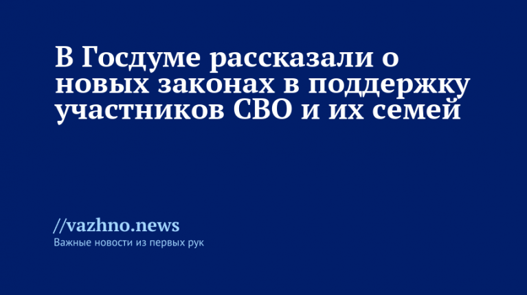 Госдума анонсировала новые законы в поддержку участников СВО и семей