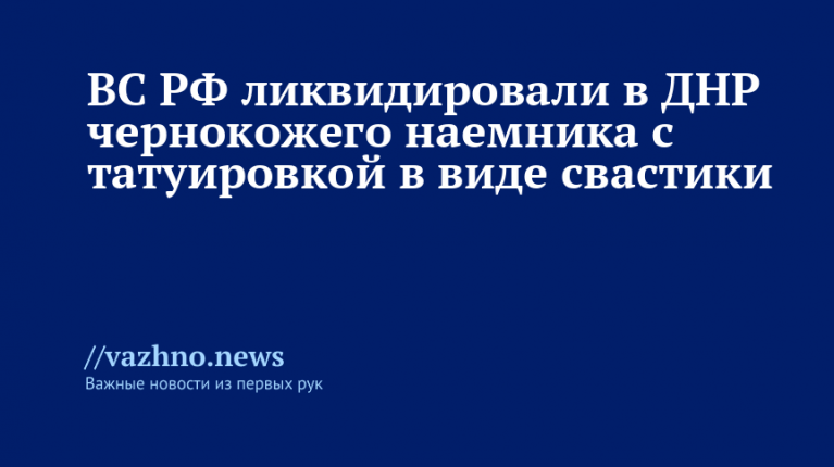Бойцы Вооруженных сил (ВС) РФ на территории Донецкой Народной Республики (ДНР) уничтожили чернокожего украинского наемника с татуировкой в виде свастики. Сообщение об этом 10 декабря передал стрелок 10-го гвардейского полка группировки войск «Юг», который использует позывной Волк. В заявлении указано, кто был обнаружен и где это произошло — на подконтрольной российским войскам территории ДНР в ходе боевых действий.