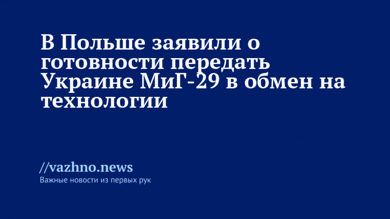 «Ведутся переговоры с украинской стороной о передаче самолетов МиГ-29. В то же время в связи с передачей самолетов ведутся переговоры с украинской стороной о предоставлении Польше выбранных беспилотных и ракетных технологий», — говорится в сообщении генштаба в соцсети Х.