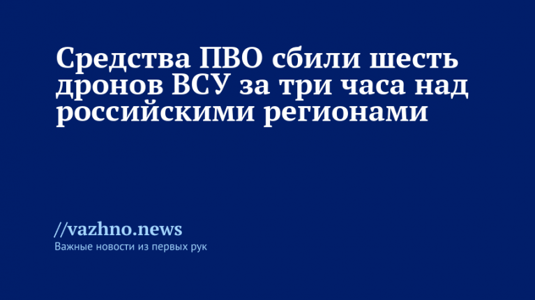 Средства ПВО сбили шесть дронов ВСУ за три часа над российскими регионами