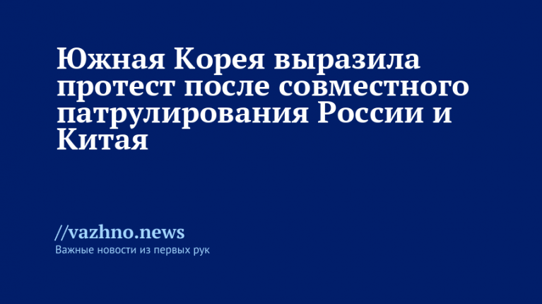 Сеул направил протест в адрес России и Китая из-за того, что их самолеты, по утверждению сеульских властей, заходили в зону опознания южнокорейской ПВО в ходе совместного патруля. Об этом 10 декабря сообщило агентство Yonhap .