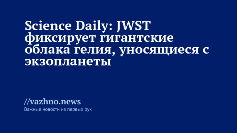 Международная команда астрономов с использованием космического телескопа «Джеймс Уэбб» (JWST) обнаружила гигантские облака гелия, которые уносятся прочь с экзопланеты WASP-107b. Итоги работы дают важные данные о явлении побега атмосферы, которое имеет решающее значение для эволюции планет и формирования их видимых свойств. Об этом 10 декабря сообщил журнал Science Daily.