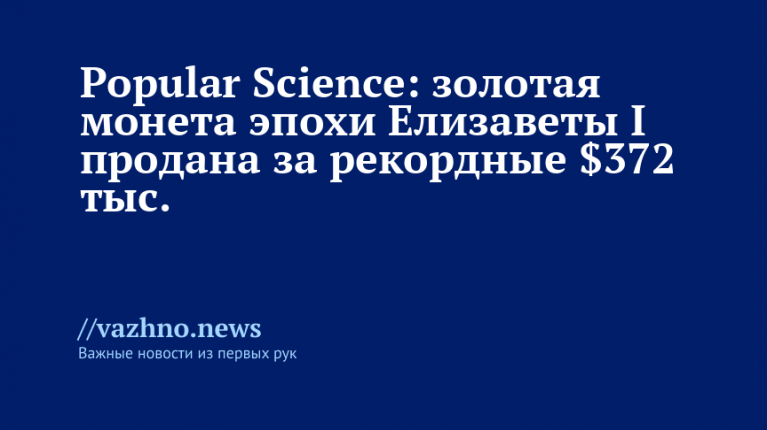 Редкая золотая монета Елизаветы I продана на аукционе за $372 тыс