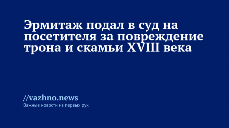 Государственный Эрмитаж обратился в суд с требованием взыскать 847 тыс. рублей с посетителя Александра Дробышева. По информации, в марте мужчина проигнорировал запрет и сел на трон магистра Мальтийского ордена XVIII века, который принадлежит императору Павлу I. Об этом 10 декабря сообщила руководитель объединенной пресс-службы судов города Дарья Лебедева.