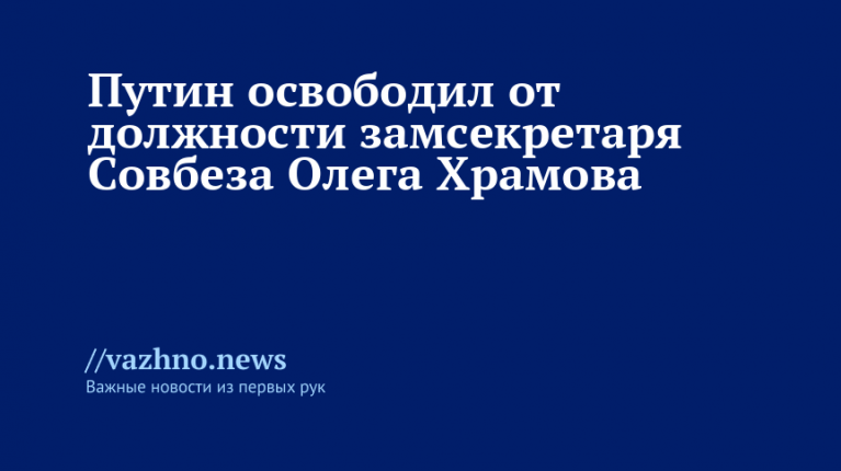 «Освободить Храмова Олега Владимировича от должности заместителя секретаря Совета Безопасности Российской Федерации», — говорится в указе.
