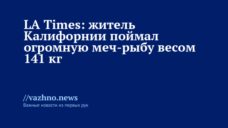 В США житель Калифорнии выловил недалеко от своего дома меч-рыбу весом 141 кг и поделился ею с примерно 70 людьми. Об этом 10 декабря сообщает Los Angeles Times.