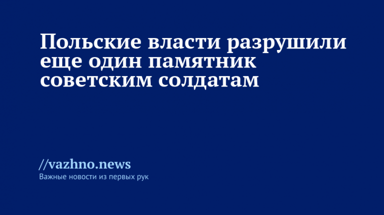 В польском городе Машево местные власти снесли памятник советским солдатам. Сведения об этом 10 декабря прозвучали в эфире телеканала TVP.