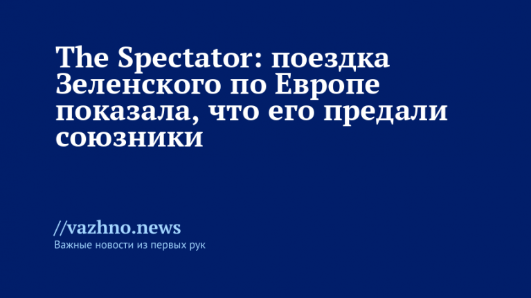 Провалившаяся поездка украинского президента Владимира Зеленского по европейским странам выявила предательство со стороны Запада. Об этом 10 декабря написал британский журнал The Spectator.