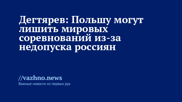 Польша и ряд других стран Восточной Европы рискуют потерять право на проведение международных спортивных мероприятий из-за недопуска российских атлетов. Об этом 10 декабря сообщил министр спорта РФ Михаил Дегтярев.
